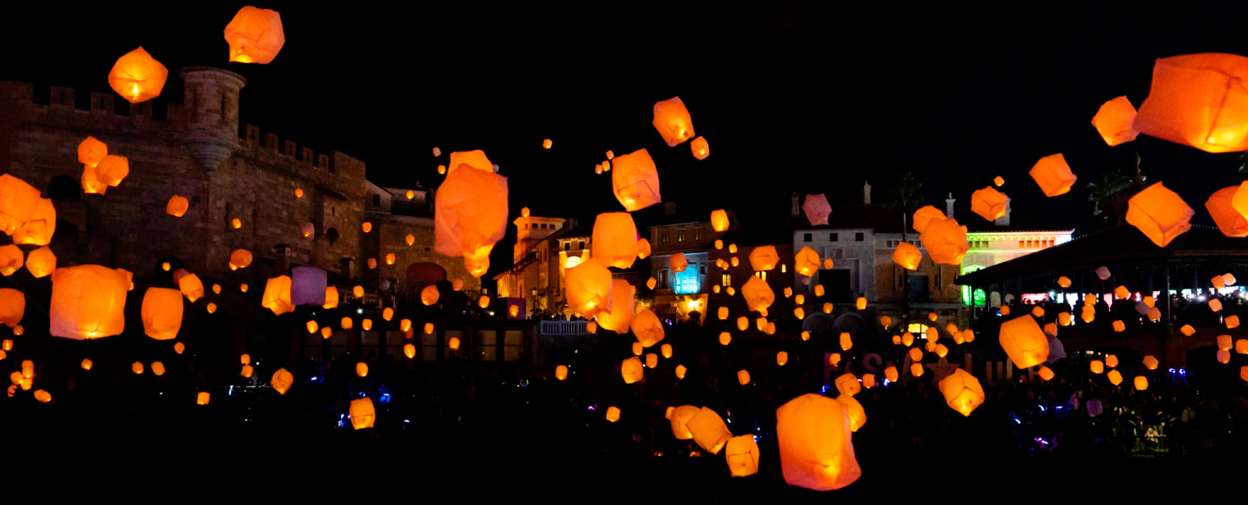 電球色ランタンとドローンショーが