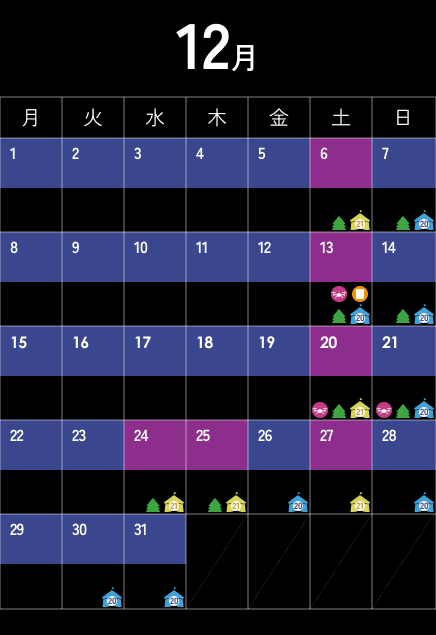 [ 11月2日〜12月25日の土・日・祝 / CLOSE 〜21:00 ]