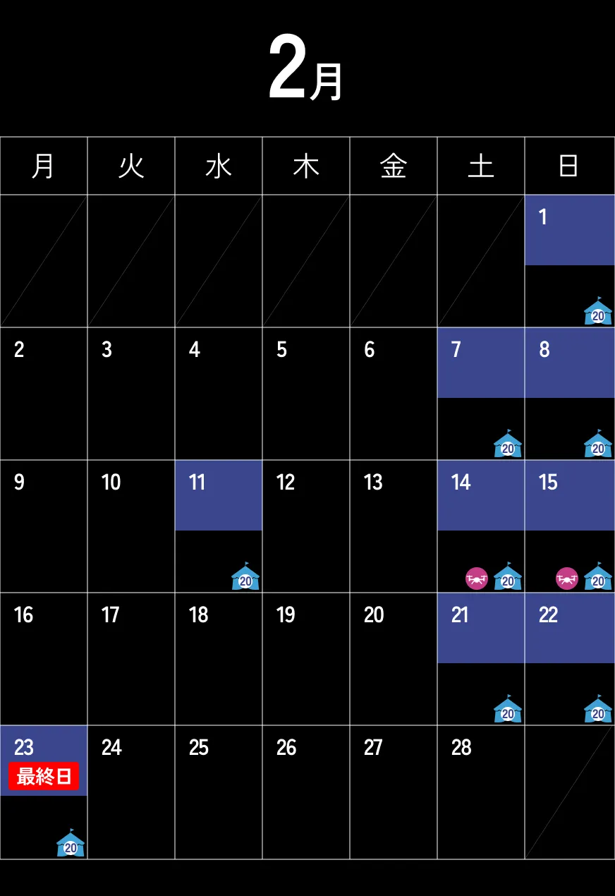 - 8種のアトラクション運行日(〜20:00)